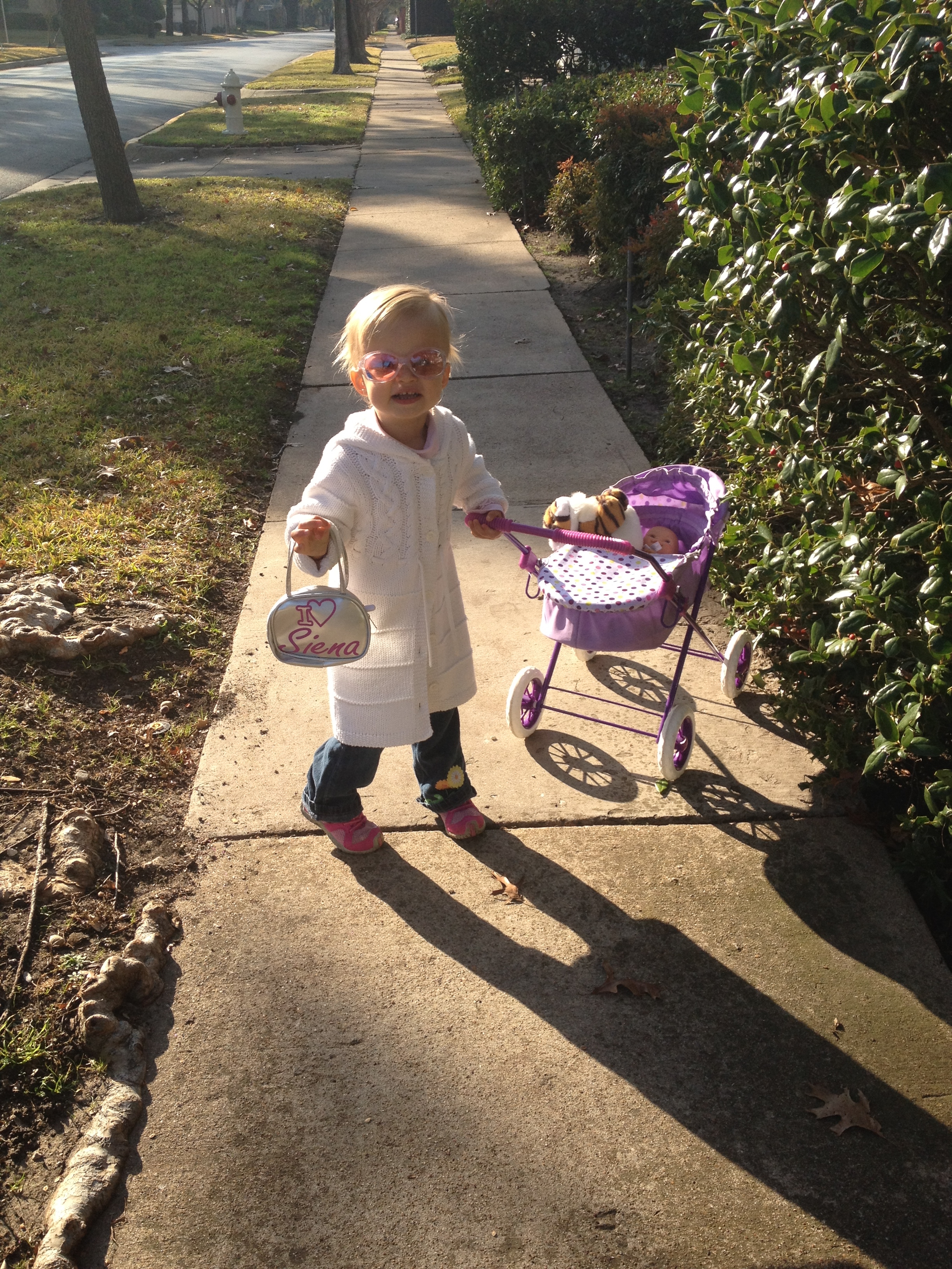 I was a little surprised when Sienna immediately gravitated towards accessories – as soon as she could reach, she reached for purses, shoes, hats and sunglasses. ย But then once, when Sienna had just learned to stand on her own, a little boy at the playground pushed her down. ย She stood back up and hit him with her purse. ย I thought “Great use of accessories to stand up for yourself!” ย Parenting win! ย (add another check to #2!)