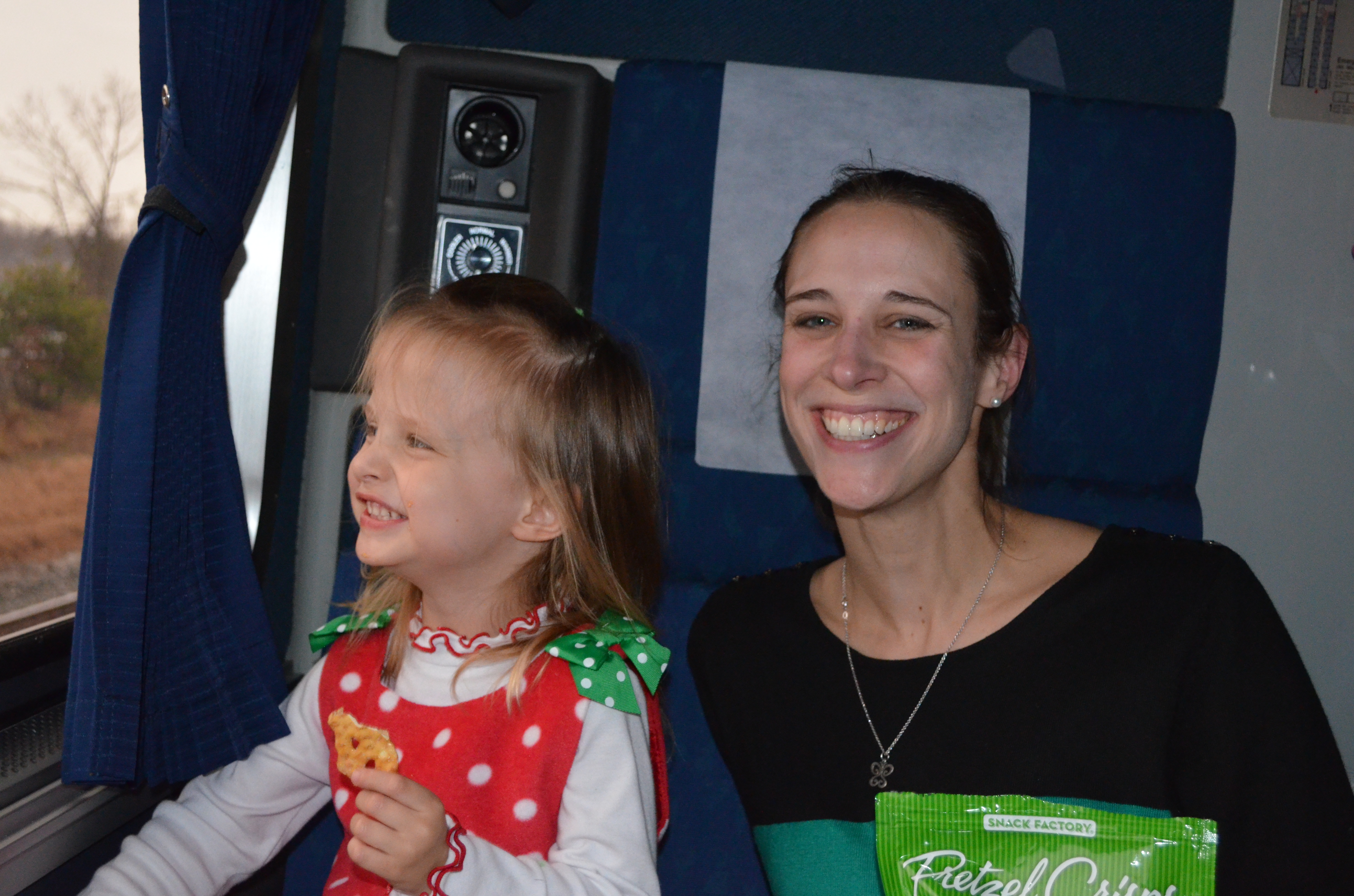 Rare dad remembered that there is an overnight train from Virginia to Florida with sleeper cars and room to take your car along as well. Sold! We packed up the car, gifts and all, and were on our way. I joked that it was either going to be the best decision we’d ever made or the worst one. Now that it’s behind us, I deem it a huge success! Sienna loved every minute of it and both of us were pretty stress-free. Since we arrived Christmas Eve morning and it took us to sunny Florida, I have nicknamed it the “Solar Express.”
