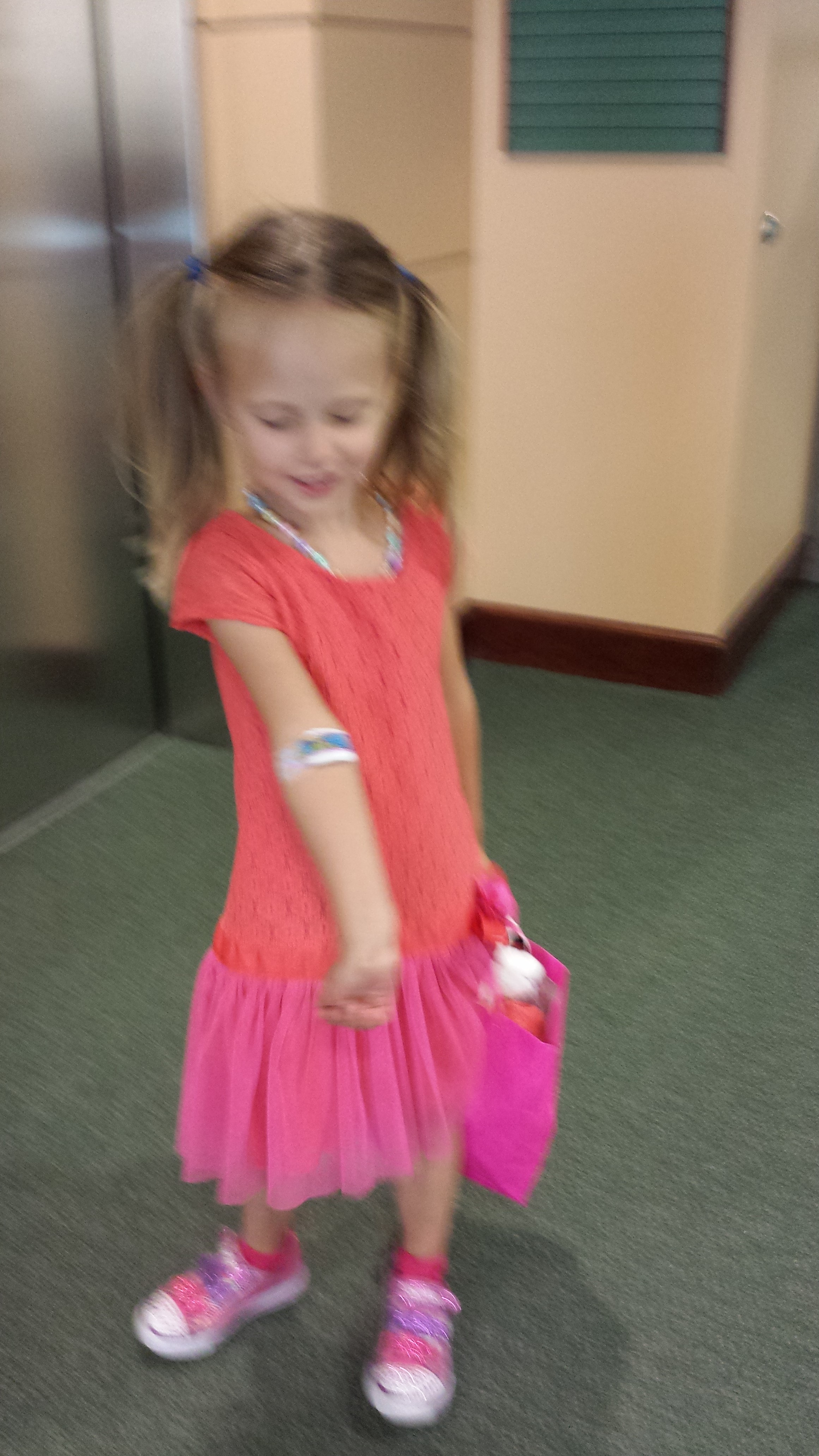 Me: And if they need to draw your blood, that will be ok too, because girls who get blood drawn get to pick out really special treats afterwards. And you know you can’t get shots, but did you know you actually CAN have your blood drawn if they are very careful.