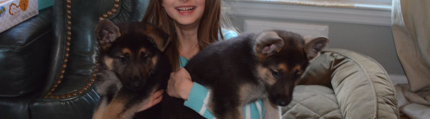 The goal of the program is for the puppies to have positive experiences with all different kids of people, houses, animals, noises, experiences, etc, so that they are ready for anything when they are called to action as guide dogs. In the program you get 1-2 puppies for 3 nights. The dogs in the program are labs and German shepherds, and this time, we received two German shepherds: Harper and Hampton.
