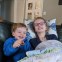 Overall Alex has been an ideal baby. He started out with his days and nights mixed up, but now that he is 12 weeks old, he sleeps well (regularly going 8 or 9 hours, and once, 10 hours!). He’s smiling, belly laughing, rolling over front to back and back to front, saying “hi!” occasionally, has good neck control and is always in a good mood. Truly, always! He is remarkably alert and loves people. We thought that maybe we were biased, since he is ours and since we had waited so long for him. But our families, friends, and complete strangers always comment on his sheer delightfulness. I also think there is something charming about a sweet newborn when the other cousins on both sides (including our own big kid!) are old enough to talk back. Here he is being delightful: